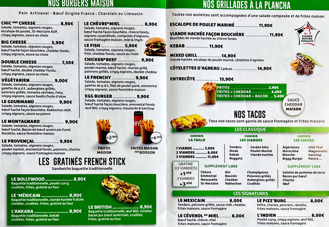Notre menu